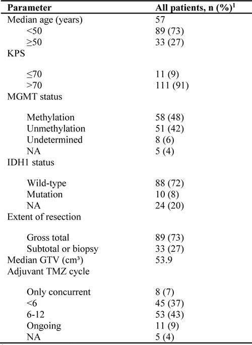 Table 1: Characteristics of GBM patients