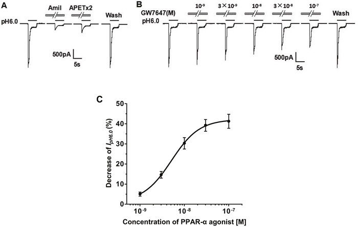 Involvement of PPAR-α in GW7647 inhibition of ASIC currents
