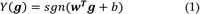 SVM is a classic algorithm for classification. In this study, we used linear SVM for the feature selection, though SVM could be customized by other kernel methods and generated to handle non-linear boundaries when the dataset size was very large. Also, SVM is a commonly used method for gene selection based on recursive feature elimination [59]. In this model, sign function was used to convert numerical output from input genes expression to categorical label. The model was defined by the following equation: