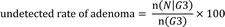 where n(a|b) is the number of tissue examples, in case that a diagnosis by human pathologists is b and a prediction by the system is a. An index called the “over-detected proportion” is equivalent to the proportion of second checking, and is directly related to various costs. The undetected rate of carcinoma and undetected rate of adenoma are expected to be almost zero, while keeping the over-detected proportion low. Note that there is a trade-off relation between “undetection” and over-detection.