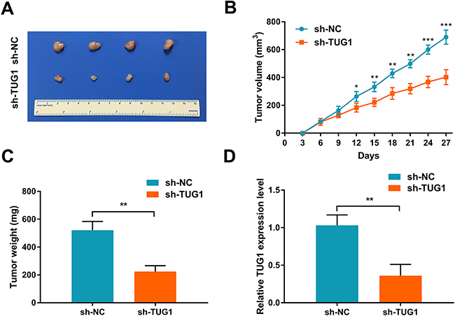 TUG1 knockdown suppresses tumor growth in vivo