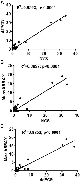 Correlation between NGS, ddPCR and MassARRAY
