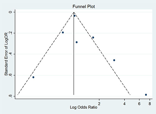 Due to relatively limited number of eligible studies, we only conduct publication bias between U-Cd concentration and risk of DM, but not in B-Cd concentration. There was little evidence of publication bias with Egger funnel plot asymmetry (P = 0.368) and Begg rank correlation tests (P = 0.446). Funnel plot symmetry (Figure 4) was also examined.