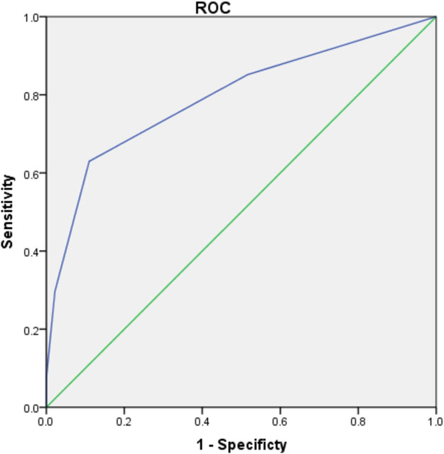 The ROC curves of the scoring system for predicting postoperative renal dysfunction are shown in Figures 1 and 2. The AUC of the ruptured group is 0.794 (95% CI 0.686–0.902, P < 0.001), and that of the unruptured group is 0.811 (95% CI 0.691–0.932, P < 0.001). The Hosmer–Lemeshow goodness-of-fit test was not statistically significant (chi-square = 1.376, df = 3, P = 0.711 vs chi-square = 0.512, df = 3, P = 0.916), indicating that the model was acceptable.