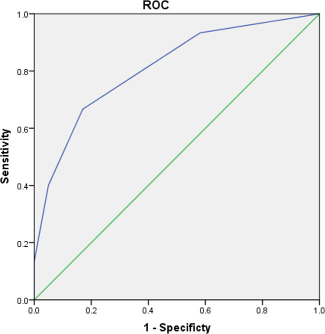 Figure 1: ROC curve of WCRDA in ruptured group.
