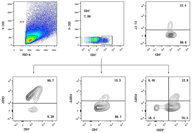 Stained cells were processed on a BD flow cytometer equipped with CellQuest software and analyzed using FlowJo 10 software (Treestar, Ashland, OR, USA). Figure 4 shows representative flow cytometry dot plots illustrating the method for detecting and classifying cell subpopulations.