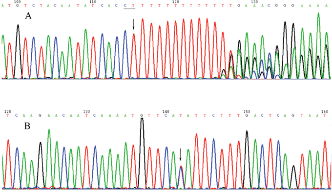 A total of sixteen differential single nucleotide polymorphisms (SNPs) loci and eight differentially small InDels were discovered by sequencing all exons in the eight small families and alignment of SNPs and small InDels within families and between families (Table 2 and Table 3).