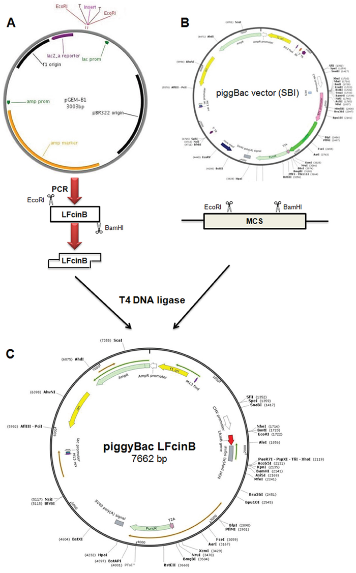 Cloning of LFcinB into mammalian cell-specific expression vector PiggyBac