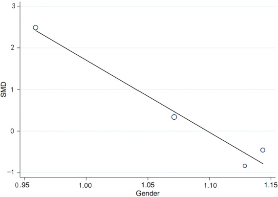 Figure 3: The meta-regression analysis for gender to assess differences in IL-17 serum levels between psoriasis patients and healthy controls.