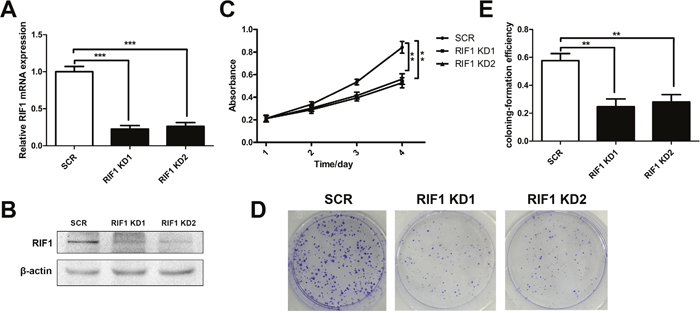 Knockdown of RIF1 reduces cell proliferation and colony formation