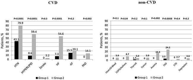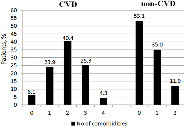 Figure 3: The prevalence of selected cardiovascular (CVD) and non-cardiovascular (non-CVD) comorbidities.
