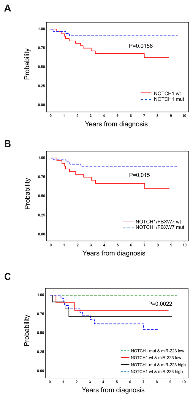 Prognostic significance of miR-223 expression overcomes NOTCH1/FBXW7 mutational status