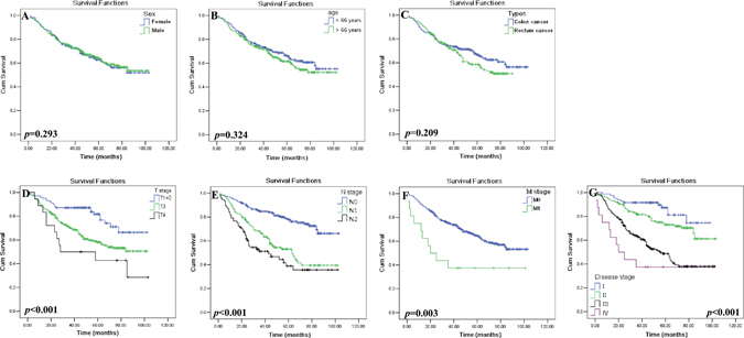 Patient data including age (median: 66 years; range:26 years-90 years), gender (nmale = 268; nfemale = 189), date of initial diagnosis and surgical operation, TNM status including size and extent of primary tumor (T), regional lymph node status (N) and distant metastases (M), and clinical disease stage were documented. The clinical stage classification follows the 7th TNM staging system by UICC and the AJCC [28]. All specimens were pathologically confirmed. All samples were anonymously analyzed in accordance with the Declaration of Helsinki. The study protocol was approved by the Ethical Board of the Taizhou Hospital of Zhejiang Province and a written informed consent was obtained from all patients.