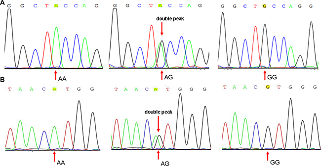 Figure 5: Sequence diagrams of SNP rs3087243 and rs231775. (A) Sequence diagrams of rs231775; (B) Sequence diagrams of rs3087243.