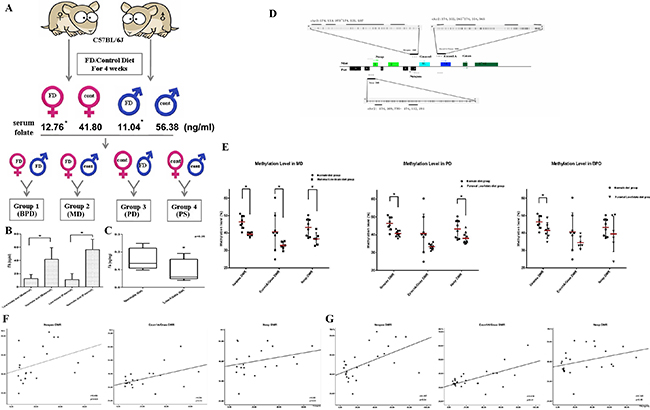 There is an emerging concept that early life environment may have widespread consequences on individual’s health later in life, starting from zygote stage, through infancy, to adulthood [1]. Epidemiological and animal studies have shown that there is a close link between birth defects and exposure to environmental factors, including diet, deficiency in nutrition, and toxic chemical [2–4]. Among these, considerable attention has been paid to folic acid because of its key role in maintaining healthy embryo development [5, 6]. Folic acid deficiency has long been recognized as an important contributor to developmental anomalies [4, 7–10], and has been correlated with increased risk of intrauterine growth restriction (IUGR) and neural tube defects (NTDs), as well as cardiac and limb abnormalities. Our previously work also indicated that lower concentrations of maternal folate are related to an increased risk of NTDs [11]. Folate intake and availability play a crucial role in epigenetic programming through the 1-C metabolic pathway, and the epigenetic regulation involved has been regarded a fundamental aspect in studying early development and disease. Maternal folate deficiency during pregnancy has been implicated in adverse pregnancy outcomes due to the induction of DNA hypomethylation, and subsequently an altered expression of apolipoprotein AI and interferon-gamma in the spleen and placenta [10, 12–14]. There is growing evidence that paternal folic acid levels can also affect the epigenetic status of the genome [15–17]. Paternal epigenetic alterations can lead to lethal mutations [18] and also result in poor embryonic development [19–21]. Parental epigenetic profile established during environmental exposures will be passed on by the gametes, ultimately affecting the development of offspring [21]. Although the effects of folate deficiency on embryo development are extensive, profound, and pleiotropic, evidence is lacking to delineate the critical region in epigenome regulated by parental folic acid and mechanisms by which folate deficiency affects normal embryogenesis.