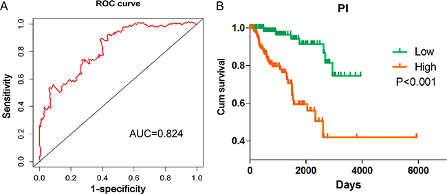 Patients with KIRP were categorized into high risk and low risk cohorts according to the cut-off of the individual infection point of PI. The impact of PI on the OS of KIRP cases was measured by univariate and multivariate Cox proportional hazards regression analysis. Several clinical parameters, such as age, tumor stage, and cancer status, etc. were adjusted. Hazard ratio (HR) and 95% confidence intervals (CI) were evaluated. In order to gauge the accuracy of the prognostic model for time-dependent disease outcomes, we utilized the R package “survival ROC” to conduct ROC curve analysis within 5 years as the defining point [53]. Kaplan-Meier survival curves were employed to calculate OS duration for KIRP patients with predicted high or low PIs.