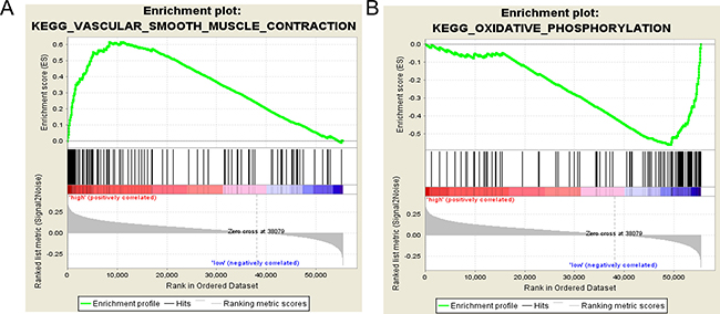 GSEA, also known as functional enrichment analysis, could facilitate the identification of types of genes or proteins that are over-represented in a large set of genes or proteins which may be connected with disease phenotypes. GSEA distinguishes itself from other pathway analysis owing to its enrichment process–the gene expressions in each cohort are first calculated and then enriched according to their expressions. The calculation is as follows: calculate the enrichment score (ES) that embodies the amount to which the genes in the set are over-represented at either the top or bottom of the list. The Molecular Signatures Database (MsigDB) accommodates a large group of annotated gene sets that can be utilized with most GSEA Software. In the current study, a total of 60,483 genes were inputed for GSEA. Gene sets with a p-value less than 0.05 and a false discovery rate (FDR) value <0.25 were deemed significantly enriched. If no significant gene set could be obtained, then the gene sets were listed ascendingly according to the orders of p-value and FDR. The results were generated by GSEA.
