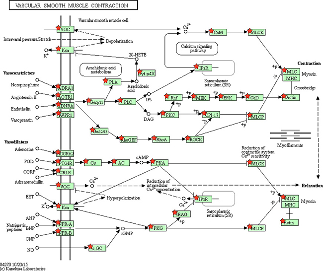 Having classified the patients into high risk and low PI cohorts according to their PI scores, we examined the signaling pathways of differentially-expressed genes in the two cohorts and found that the major pathways of the high risk group included KEGG_VASCULAR_SMOOTH_MUSCLE_CONTRACTION, KEGG_TGF_BETA_SIGNALING_PATHWAY, and KEGG_MAPK_SIGNALING_PATHWAY; these were utterly different from its low counterpart, of which the main pathways involved KEGG_OXIDATIVE_PHOSPHORYLATION and KEGG_REGULATION_OF_AUTOPHAGY. It was assumed that the pathway differences helped clarify the underlying molecular mechanisms which produced contrasting outcomes. Nonetheless, the relationships between these pathways and KIRP required experimental verification.
