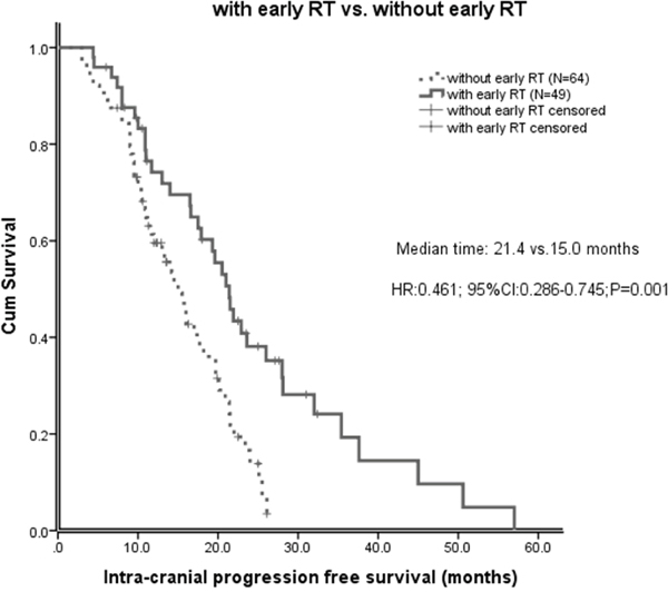 In this study, we selected NSCLC patients with brain metastases who had good responses to EGFR-TKI to examine the role of early brain RT on intracranial disease control and survival.