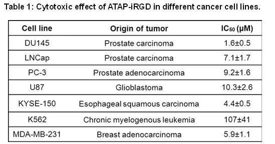 Pro-apoptotic effects of ATAP-iRGD in different cancer cells