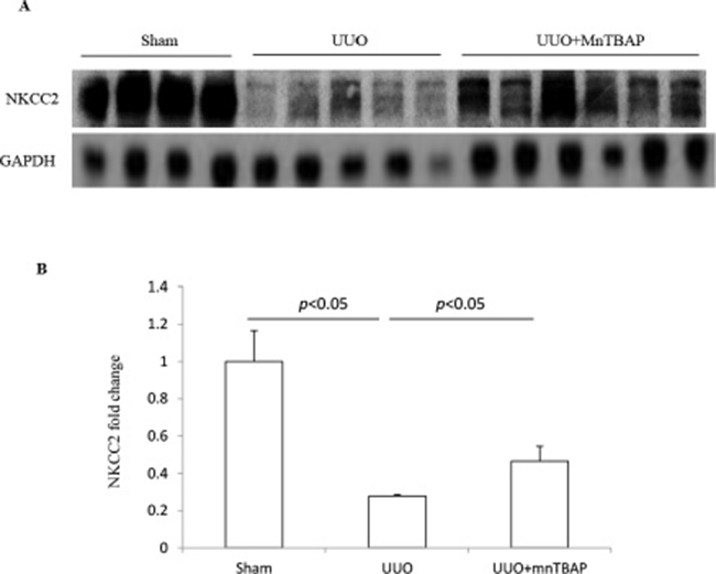 Effect of MnTBAP therapy on the protein expression of NKCC2 in obstructed kidneys