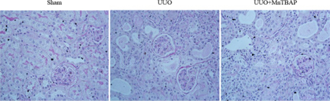 Figure 8: PAS staining in obstructed kidneys following MnTBAP treatment.