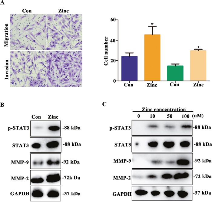 Zinc promotes migration and invasion of HTR-8/SVneo cells via up-regulating MMP-2/9 expression mediated by STAT3
