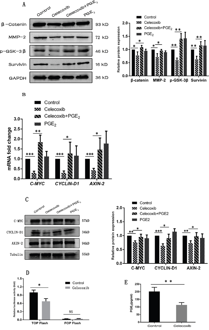 Celecoxib down-regulates the Wnt pathway activity by inhibiting the synthesis of PGE2 and reducing the phosphorylation of GSK-3β