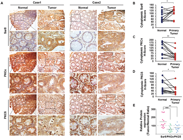Low PKCα/δ expression correlates with elevated Sur8 levels in human CRC