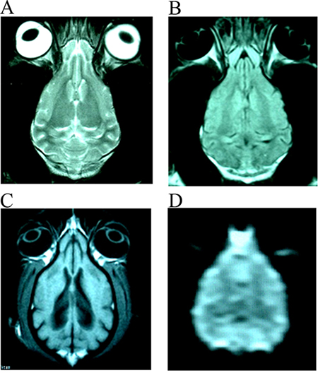 Figure 1: The normal images of T2WI (A), FLAIR (B), T1WI (C) and DWI (D) from the same slice of canines’ brain.