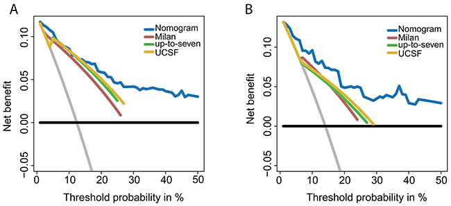 In our study, the nomogram demonstrates the highest curve compared to Milan, UCSF, and up-to seven criteria, revealing that it is the optimal decision-making strategy for PM prediction [11-13] (Figure 3).