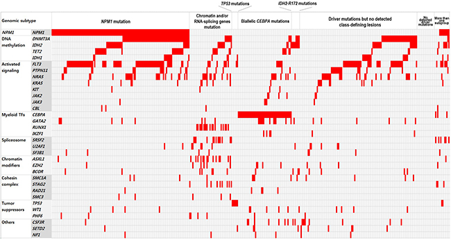 5. Patel JP, Gonen M, Figueroa ME, Fernandez H, Sun Z, Racevskis J, Van Vlierberghe P, Dolgalev I, Thomas S, Aminova O, Huberman K, Cheng J, Viale A, et al. Prognostic relevance of integrated genetic profiling in acute myeloid leukemia. N Engl J Med. 2012; 366:1079–89. https://doi.org/10.1056/NEJMoa1112304.