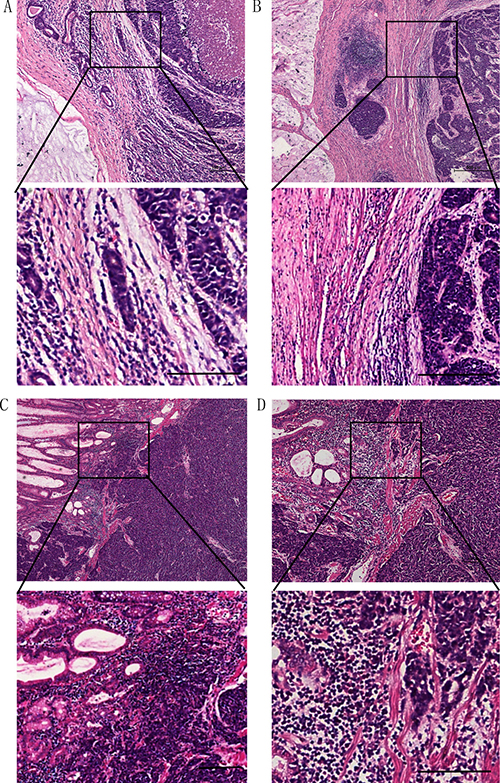 In our study, we found that gastric cardia NECs are mostly mixed with high grade adenocarcinoma, and the borders are surrounded by loose connective tissue with inflammatory cells. Reports of gastric cardia NEC are very limited because of the unique physiological role of this mucosa. Some researchers found that neuroendocrine cells of gastric cardia are present in Barrett’s esophagus, a severe gastro-esophageal reflux disease [24]. Voutilainen et al. reported 18 CgA-positive gastric cardia cases. However, they did not state the stage of the NETs. Most NETs in gastric cardia are of low-intermediate grade, and that among 76 cases of gastric cardia with NETs, only 11 cases involved NEC, which had a larger tumor size and deeper invasion [8].