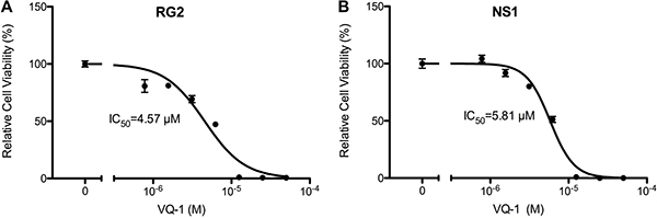Cytotoxicity of VQ-1, in RG2 and NS1 cells