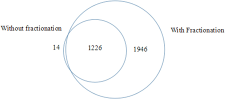 Figure 1: Venn diagram of protein numbers being identified in one identical sample by methods with and without fractionation.
