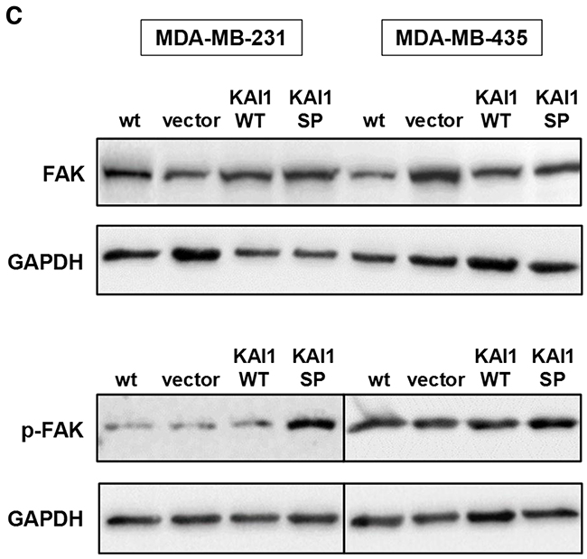Impact of KAI1-WT/KAI1-SP on the expression and activation of the focal adhesion kinase