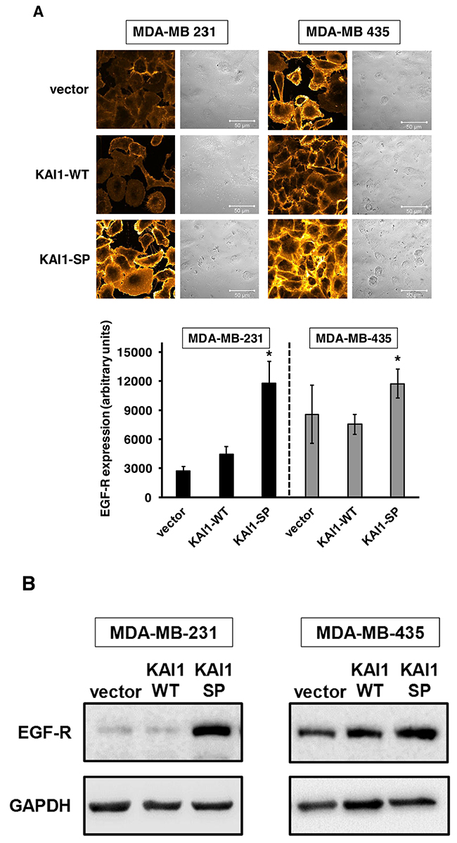 Detection of EGF-R expression in human breast cancer cells as a function of KAI1-WT/KAI1-SP