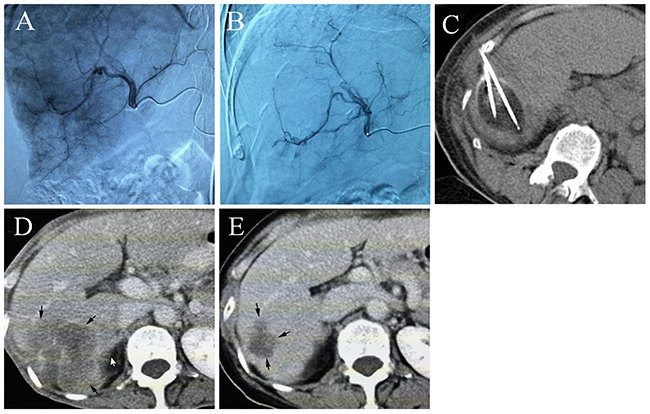 The exclusion criteria were (1) Child-Pugh score C; (2) the main portal vein was completely embolized by tumor thrombus, and lack of collateral vessels; (3) multiple distant metastases, estimated survival time of less than three months; (4) proportion of the total liver tumor was more than 70% cancer; (5) obvious hepatic artery-portal vein fistula, or artery-venous fistula.