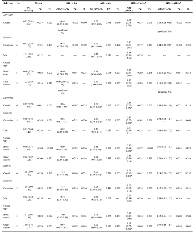 Table 3: Meta-analysis of the association between rs799917 polymorphism and cancer risk