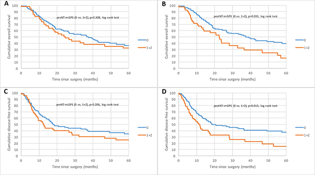 mGPS = modified Glasgow Prognostic Score; preNT = prior to neoadjuvant therapy; postNT = after neoadjuvant therapy;