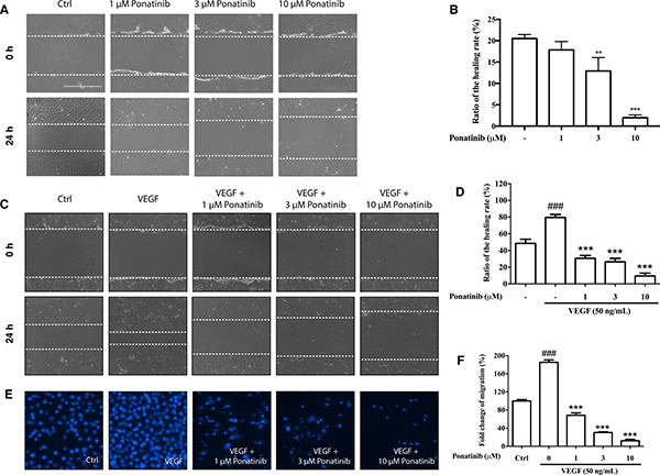Ponatinib suppressed VEGF-induced migration of HUVECs