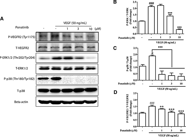 Ponatinib suppressed VEGF-induced ERK and p38 activation