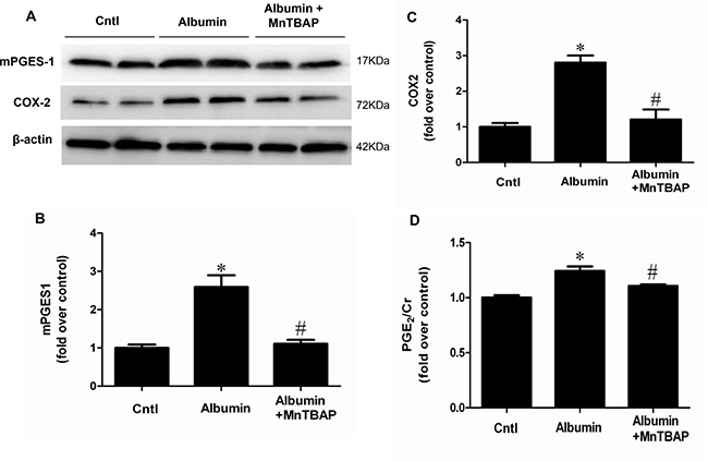Activation of COX-2/mPGES-1/PGE2 cascade by albumin overload was blocked by MnTBAP in mice