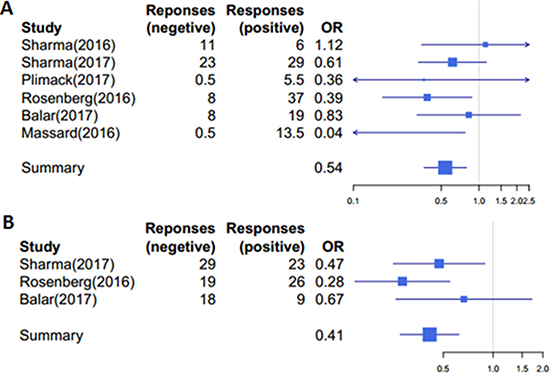 We performed a systematic review search of literatures in Pubmed, Embase, clinical trials.gov and American Society of Clinical Oncology (ASCO) meeting abstracts for relevant articles published in English. All the articles were published before July, 2017. We used the following keywords to search for the articles: “PD-1”, “PD-L1” and “urothelial carcinoma”, “urothelial cancer”, “urothelial tumor” combined with “nivolumab”, “atezolizumab”, “pembrolizumab”, “avelumab”, “durvalumab”.