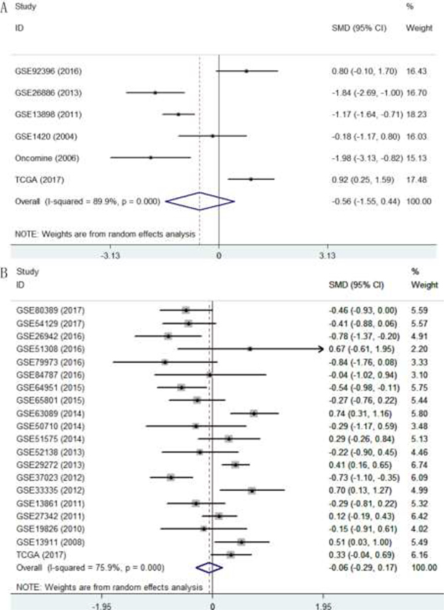 Two investigators (Dan-dan Xiong and Rong-quan He) collected essential characteristics of each included dataset independently, with disagreements were settled through discussion with a third investigator (Gang Chen). Following details were retrieved: first author, publication year, region, cancer type, sample type, data source, platform, sample size, and expression values of p27 gene in both cancer and control groups.