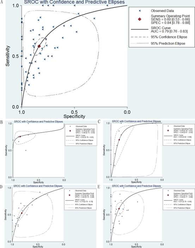 DTCs: digestive tract cancers; ESCA: esophageal cancer; ESAC: esophageal adenocarcinoma; ESCC: squamous cell carcinoma; GC: gastric cancer; CRC: colorectal cancer; TCGA: The Cancer Genome Atlas; GEO: Gene Expression Omnibus; CNKI: China National Knowledge Infrastructure; NR: data not reported; IHC: immunohistochemistry; OS: overall survival; DFS: disease-free survival; CSS: cancer-specific survival; HR: hazard ratio; OR: odds Ratio; SMD: standard mean deviation; CI: confidence interval; SROC: summary receiver operating characteristic; AUC: area under the curve.