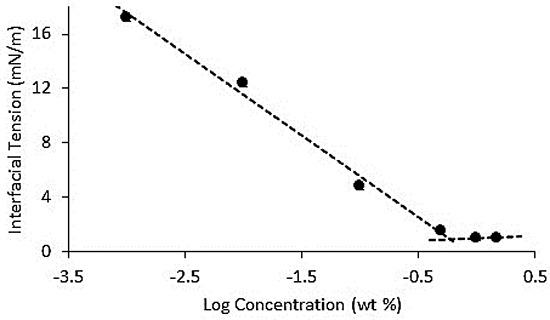 The interfacial tension between canola oil and water was measured using a TensioCAD-M® (CAD Instruments, Les Essarts-le-Roi, France) tensiometer with the Wilhelmy plate method using a platinum-iridium plate. The plate was immersed in the water phase, and the oil phase carefully layered on top. After 30 min equilibration, the weighing sensor was zeroed, and the plate slowly pulled through the liquid-liquid interface until detachment. The maximum force required to draw the plate through the interface yielded the interfacial tension, from which the critical micelle concentration (CMC) of an added surfactant (Span 80) was calculated.