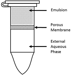 At the beginning of the release experiments, vessels containing membrane-enclosed emulsions were sealed with aluminum foil and mixed gently at room temperature or 37° C. The water phase external to the dialysis membrane was sampled at regular intervals to determine the concentration of solutes of interest. Any volume removed was replaced with water. NaCl and sodium citrate releases were quantified by solution conductivity using an Oakton Cono 6+ conductivity meter (Oakton Instruments, Vernon Hills, IL, USA) with automatic temperature compensation. Background conductivity was subtracted from all measurements during the release experiment. Standard solutions and calibration plots were prepared for the solutes for each release experiment, to determine the mass of solute released from the conductivity measurements.