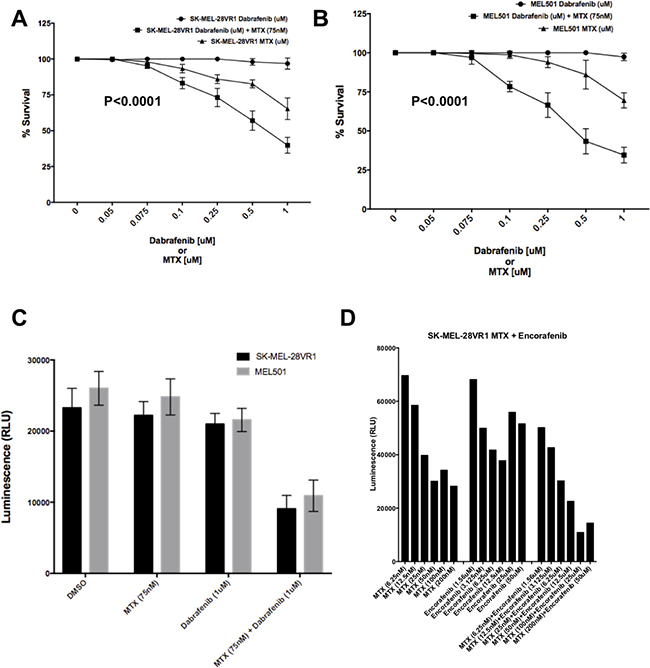 Acquired drug-resistant SK-MEL-28VR1 and intrinsically drug-resistant 501-mel cells are sensitized to dabrafenib by MTX