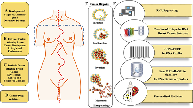 The advent of sequencing technologies has enabled intense whole genome transcriptome analysis possible and our understanding of the components that make up our complex genome has been revamped [8–10]. Not too long ago the majority of the transcriptome realm was still considered “junk” because large parts of the DNA did not appear to transcribe functional proteins. However, recently these vast stretches of the genome have been annotated and discovered to contain thousands of non-coding RNA (ncRNA). Unexpectedly, ncRNA and its various species are more abundant than protein coding genes. Today, thousands of these ncRNA have been reported and catalogued, thanks to huge genomics initiatives like ENCODE (Encyclopedia of DNA Elements), FANTOM (Functional Annotation of Mouse Genome), GTEx (Genotype-Tissue Expression) and GENCODE, the field of ncRNA research has exploded [11–14]. Furthermore, exploration into the roles of ncRNA has vastly enhanced our understanding of human diseases including the pathophysiology of breast cancer [15, 16].